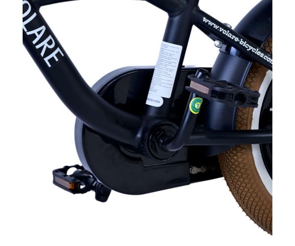 Bezpieczeństwo jest na pierwszym miejscu! Dlatego ten fajny rowerek ma hamulec ręczny i hamulec typu coaster, zamknięty pojemnik na łańcuchy i odłączane koła treningowe. Dodatkowo rower posiada ładny dzwonek. Pomyślano również o komforcie. Piękny, czarny rower Volare ma miękkie siodełko, ponadczasowy design i potrafi przyjąć uderzenie. Aby cieszyć się rowerem jak najdłużej, siodełko i kierownica mają regulowaną wysokość.