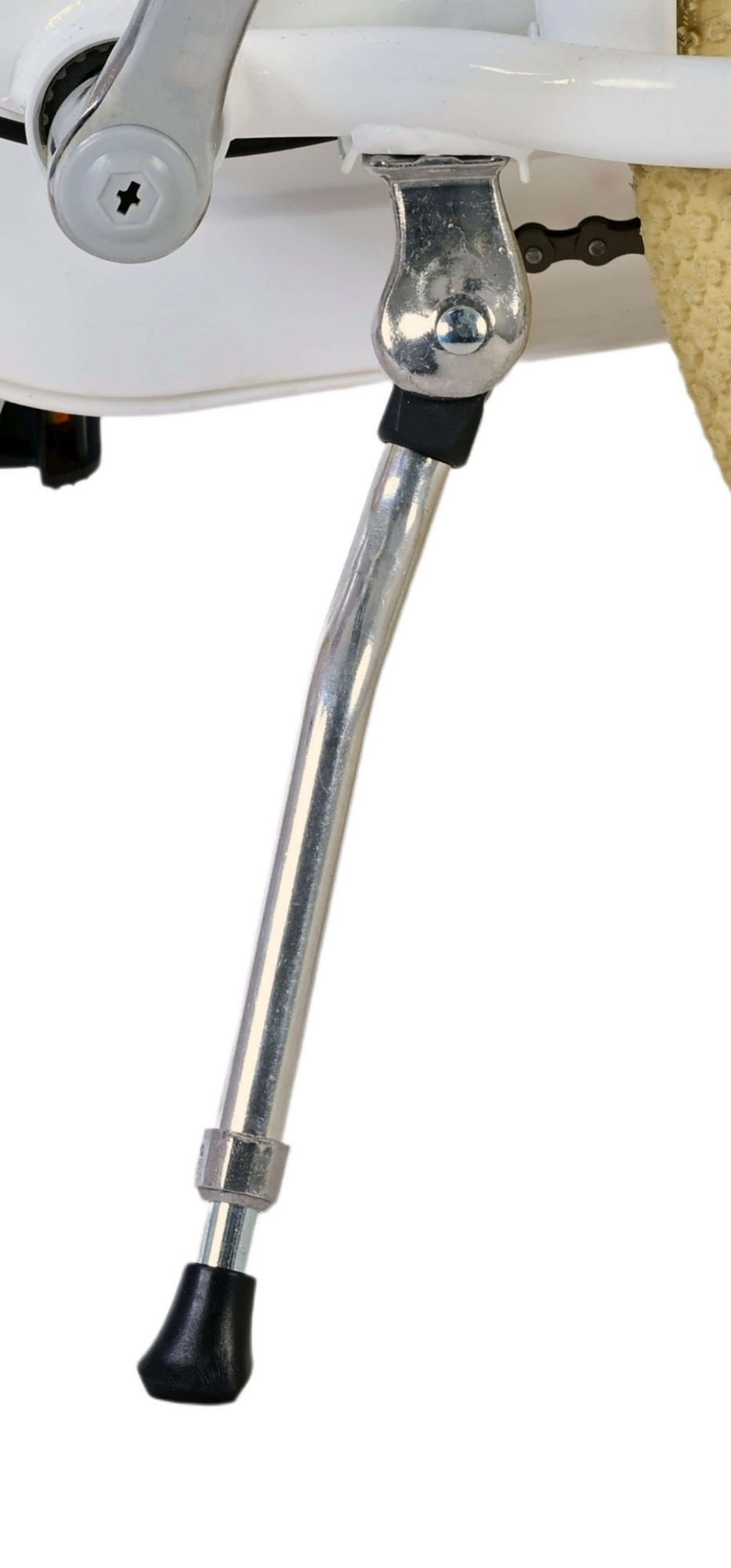 Volare Blossom jest wyposażony w światła z przodu i z tyłu, dzięki czemu dziecko jest zawsze dobrze widoczne, nawet w ciemności. Odblaski w kołach zapewniają dodatkową widoczność, przyczyniając się do bezpieczeństwa na drodze. Solidna blokada zapewnia niezbędne bezpieczeństwo, gdy rower musi zostać na chwilę zaparkowany, a solidna podstawa zapewnia stabilne ustawienie roweru.