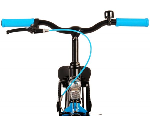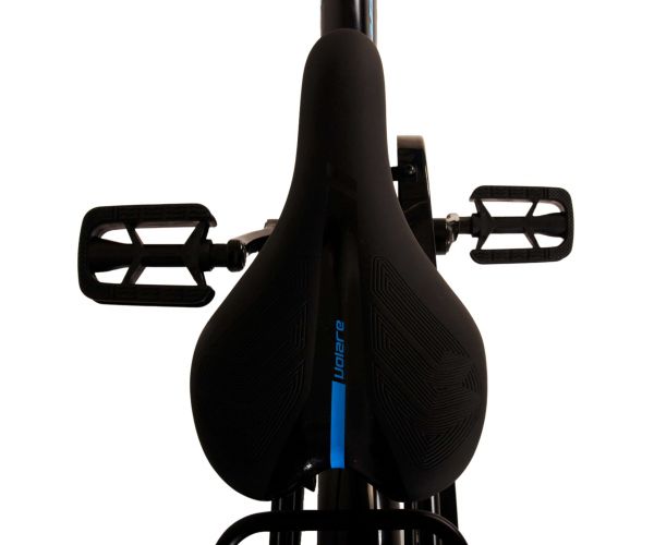Bezpieczeństwo jest na pierwszym miejscu! Dlatego ten fajny rower ma hamulec ręczny i hamulec typu coaster oraz światła zasilane bateriami z przodu i z tyłu. Dodatkowo rower ma ładny dzwonek i odblaski w kołach. Pomyślano również o komforcie. Piękny, czarny rower Volare z niebieskimi akcentami ma luksusowe, miękkie siodełko i wyjątkowo miękkie uchwyty, poręczny tylny bagażnik i wytrzymałą ramę, która wytrzyma uderzenie. Ponadto rower posiada stojak, dzięki czemu pozostaje na swoim miejscu oraz mocny zamek. Aby cieszyć się rowerkiem jak najdłużej, posiada on wyjątkowo długą sztycę podsiodłową, dzięki czemu rowerek rośnie z dzieckiem jeszcze dłużej, a kierownica ma regulowaną wysokość.