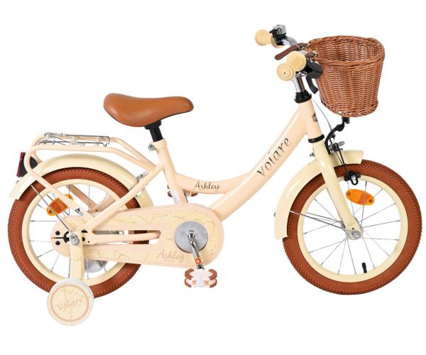 De Volare Ashley 14 inch kinderfiets is een perfecte combinatie van comfort, gebruiksgemak en een vrolijk design. Deze mooie creme fiets is uitgerust met zowel een terugtraprem als een handrem, zodat je kind op een prettige manier leert remmen. De afneembare zijwielen zorgen voor extra stabiliteit tijdens het leren fietsen en kunnen eenvoudig worden verwijderd zodra je kind meer vertrouwen heeft.