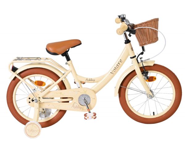 Ook aan gebruiksgemak is gedacht. Het mandje aan de voorkant is ideaal voor het meenemen van kleine spulletjes en de stevige achterdrager zorgt voor extra praktische mogelijkheden. Met zijn frisse creme kleur en complete afwerking is de Volare Ashley 16 inch kinderfiets een betrouwbare en leuke fiets voor elke jonge fietser.