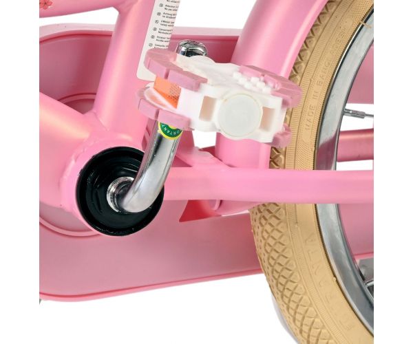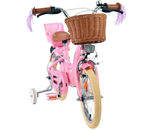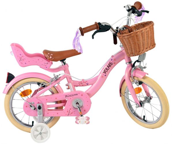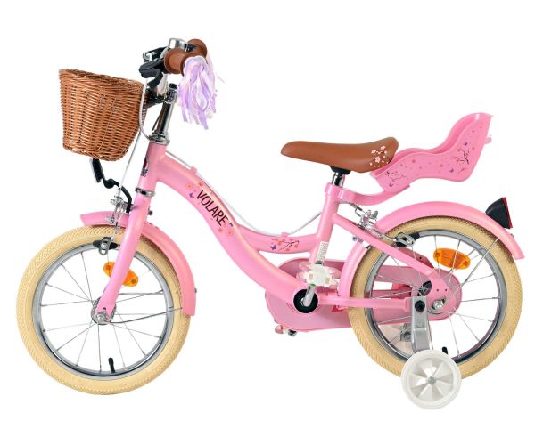 Veiligheid staat voorop! Daarom heeft deze gave fiets geen terugtraprem maar twee handremmen, afneembare zijwieltjes en een gesloten kettingkast. De fiets heeft reflectoren van voor, achter en in de wielen. Ook aan het comfort is gedacht. De mooie roze Volare fiets heeft, een comfortabel zacht zadel, een poppenzitje, vrolijke handvatversieringen en een handig rieten mandje. Om zo lang mogelijk van de fiets te kunnen genieten zijn het zadel en stuur in hoogte verstelbaar. Wordt geleverd inclusief al het montagemateriaal dat nodig is om de fiets in elkaar te zetten!