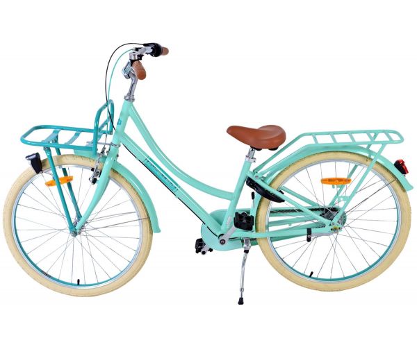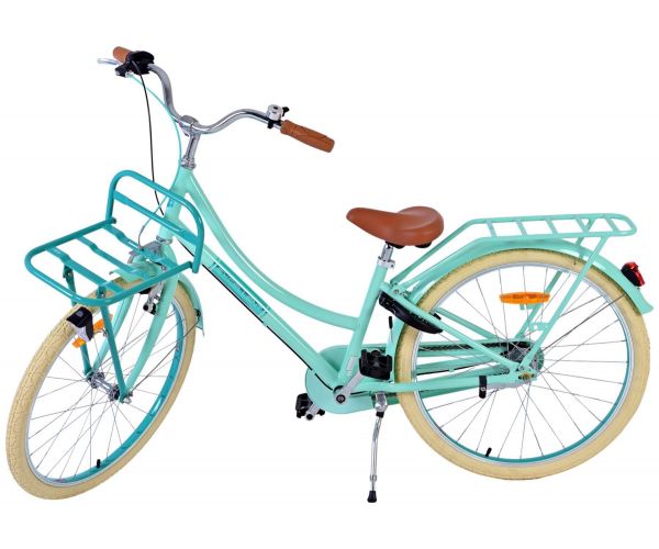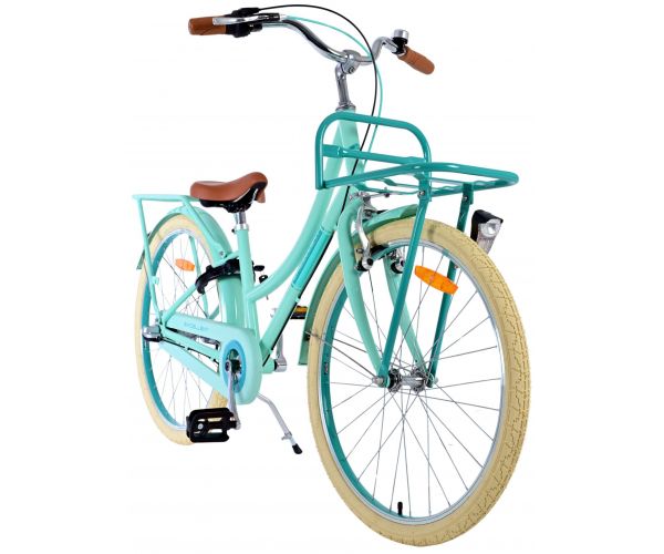 Bezpieczeństwo jest na pierwszym miejscu! Dlatego ten fajny rowerek ma hamulec ręczny i hamulec typu coaster oraz zamykany pojemnik na łańcuch. Ponadto rower ma oświetlenie z przodu i z tyłu oraz ładny dzwonek. Pomyślano również o komforcie. Piękny zielony rower Volare ma poręczny przedni bagażnik, tylny bagażnik zintegrowany z ramą i luksusowe miękkie siodełko. Aby jak najdłużej cieszyć się rowerem, siodełko i kierownica mają regulowaną wysokość.