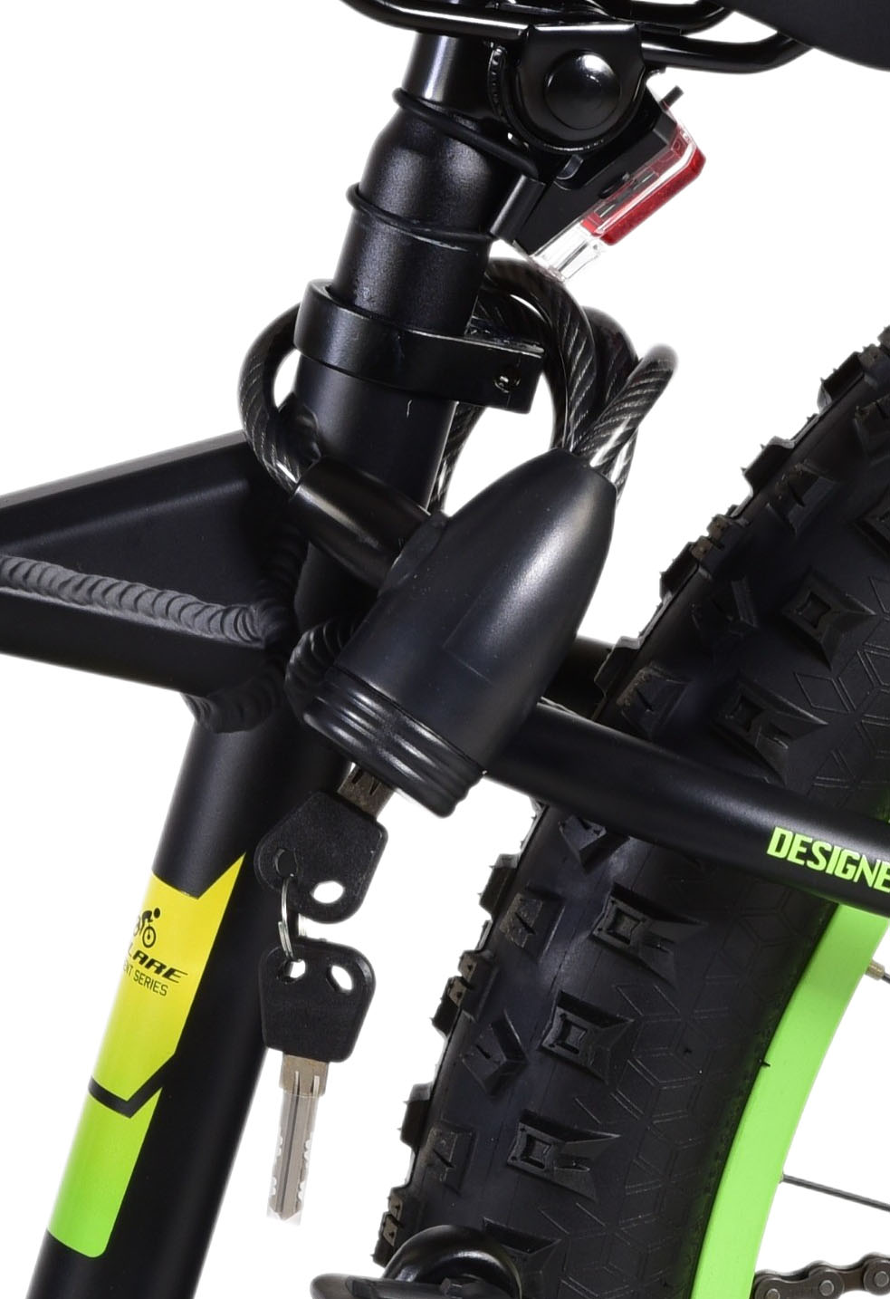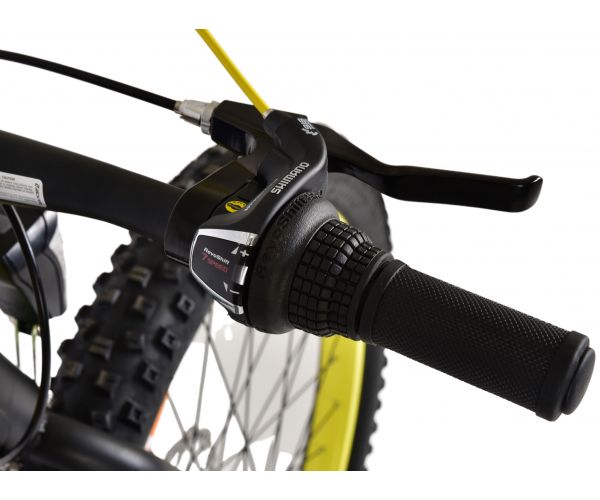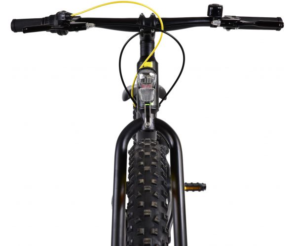 Bezpieczeństwo jest na pierwszym miejscu! Dlatego ten fajny rower nie ma hamulca na tylnym pedale, ale dwa hamulce ręczne. Ponadto rower ma przednie i tylne światła, solidne zapięcie i dzwonek. Pochylony wspornik kierownicy zapewnia lepszy widok na drogę, ale z tego powodu nie ma możliwości regulacji wysokości. Pomyślano również o komforcie. Piękny czarny rower Volare z żółtymi i zielonymi akcentami ma wyjątkowo lekką aluminiową ramę, stojak, dzięki któremu rower pozostaje na swoim miejscu, bardzo szerokie opony, 7 biegów i miękkie uchwyty wykonane z kratonu. Aby jak najdłużej cieszyć się rowerem, siodełko ma regulowaną wysokość.