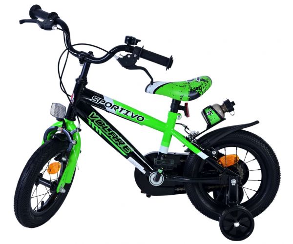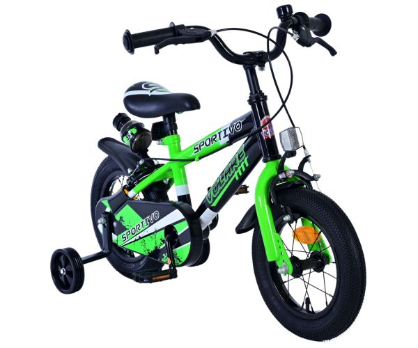 Volare Sportivo Kinderfiets - Jongens - 12 inch - Groen Zwart - Twee Handremmen