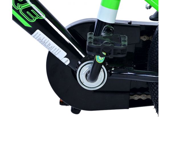 Veiligheid staat voorop! Daarom heeft deze gave fiets een gesloten kettingkast ter bescherming van de vingers. Deze fiets heeft GEEN terugtraprem maar twee handremmen! en afneembare zijwieltjes. Ook aan het comfort is gedacht. De mooie groene Volare fiets heeft een bidonhouder met bidon. Om zo lang mogelijk van de fiets te kunnen genieten zijn het zadel en stuur in hoogte verstelbaar.