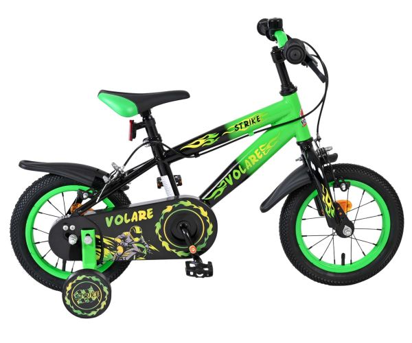 De Volare Strike 12 inch kinderfiets is een stoere fiets voor jonge racers die klaar zijn voor hun eerste avonturen op twee wielen. Met zijn sportieve zwart-groen design en robuuste uitstraling is deze fiets een echte blikvanger.