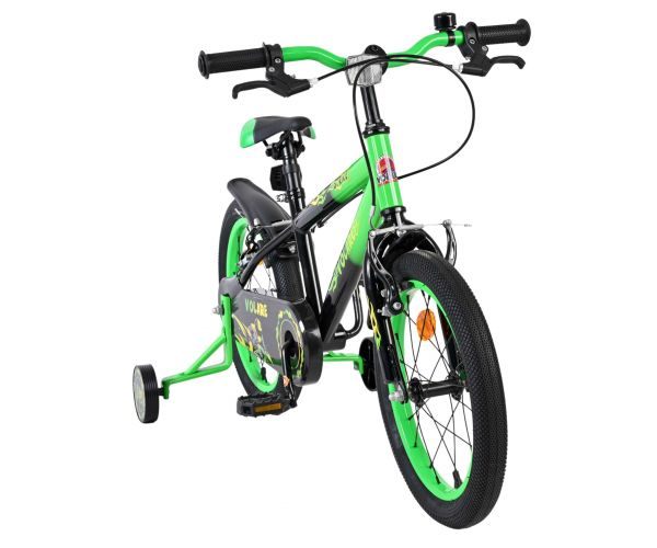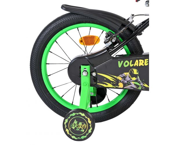 De Volare Strike 16 inch kinderfiets is de ideale fiets voor jonge avonturiers die graag in stijl op pad gaan. Met zijn stoere zwart-groene design en sportieve uitstraling is deze fiets een echte blikvanger voor elke kleine fietser.