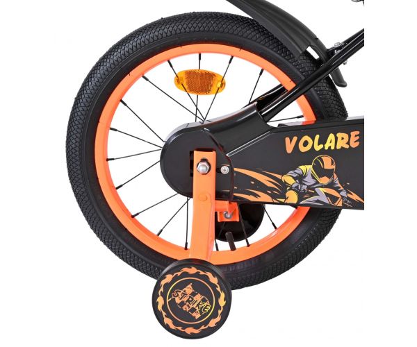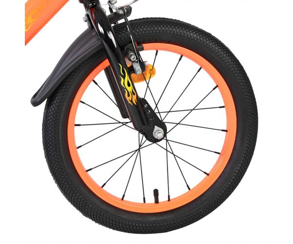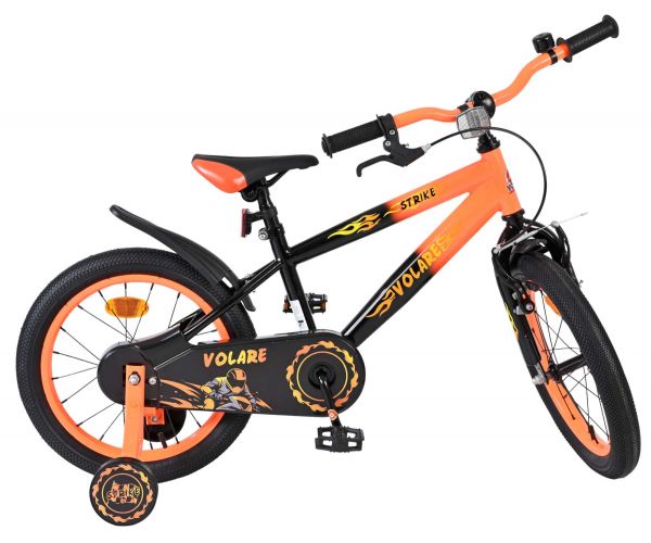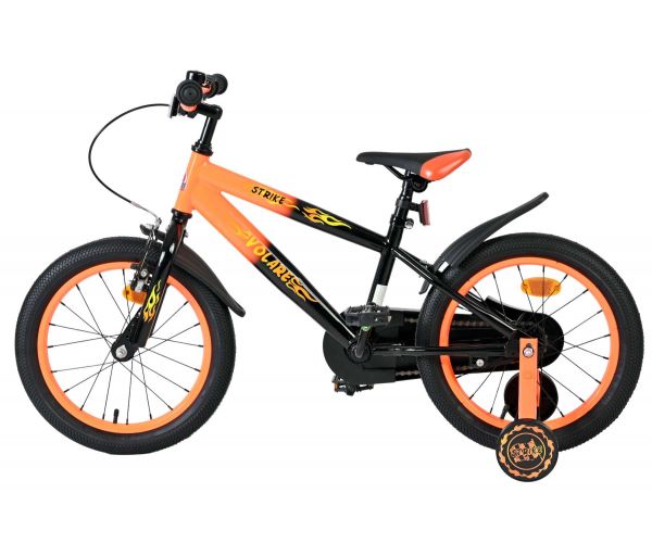 De Volare Strike 16 inch kinderfiets is de ideale fiets voor jonge avonturiers die graag in stijl op pad gaan. Met zijn stoere zwart-oranje design en sportieve uitstraling is deze fiets een echte blikvanger voor elke kleine fietser.