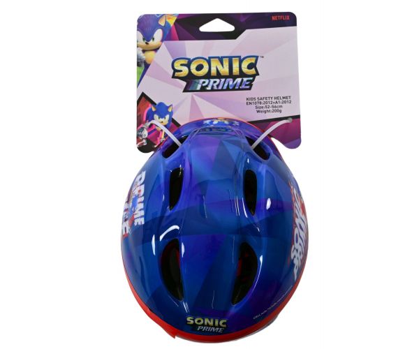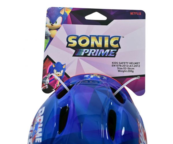 Volare Kinderfietsen beschikt over een grote collectie licentie helmen. Een daarvan is deze prachtige Sonic Prime fietshelm. De mooie blauwe kleur en de Sonic decoraties geven de helm een perfecte uitstraling. Met de draaiknop is de hoofdomtrek van de helm verstelbaar van 52 tot 56 cm. Daarbij is de onderkant van de helm ook bedekt. De helm weegt slechts 200 gram. Dat maakt hem extra licht en dus makkelijk te dragen. De helm is naar de strengste eisen van het TÜV/GS goedgekeurd.
