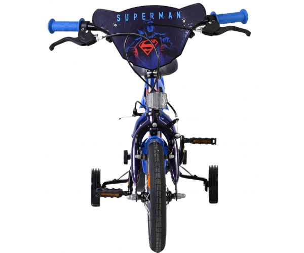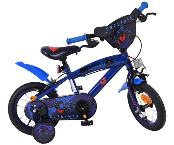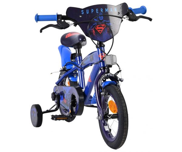 Met de Volare Superman 12 inch kinderfiets begint ieder avontuur vliegend! Deze donkerblauwe fiets met de iconische Superman-voorplaat laat kinderen direct in de huid kruipen van hun favoriete superheld.