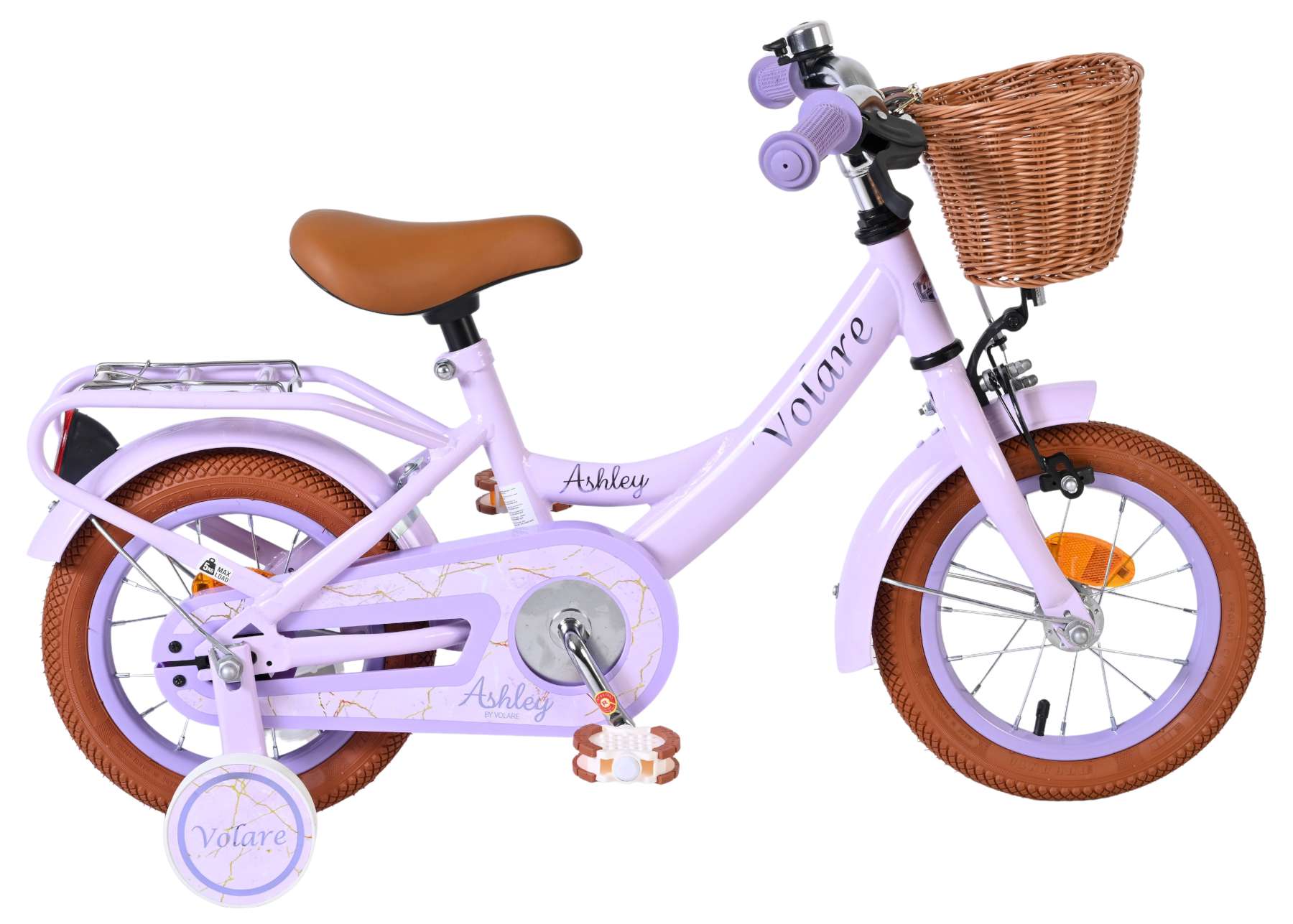 Ook aan comfort en gebruiksgemak is gedacht. De fiets heeft een leuk mandje aan de voorkant om spulletjes in mee te nemen en een stevige achterdrager voor nog meer gemak. Met zijn frisse lila kleur en complete uitrusting is de Volare Ashley 12 inch kinderfiets de perfecte fiets voor elke eerste fietservaring.
