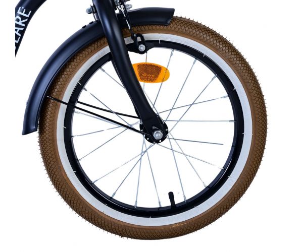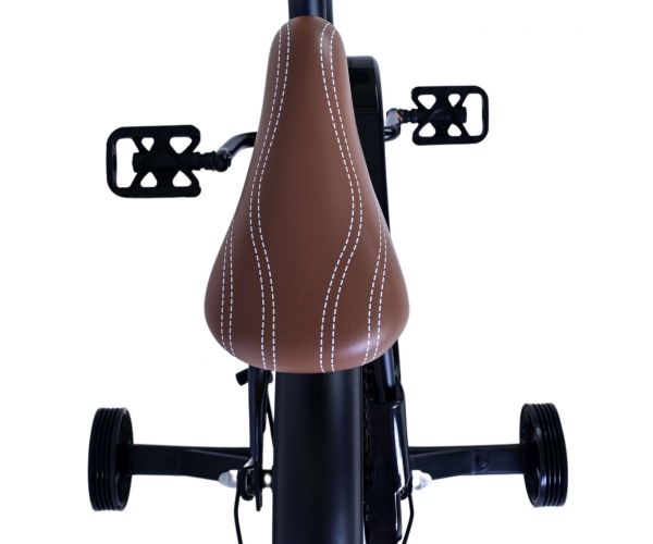Veiligheid staat voorop! Daarom heeft deze gave fiets een handrem en een terugtraprem, een gesloten kettingkast en afneembare zijwieltjes. Daarnaast heeft de fiets een leuke bel. Ook aan het comfort is gedacht. De mooie zwarte Volare fiets met bruine accenten heeft een zacht zadel, een tijdloos design, en een uniek frame dat wel tegen een stootje kan. Om zo lang mogelijk van de fiets te kunnen genieten zijn het zadel en stuur in hoogte verstelbaar.