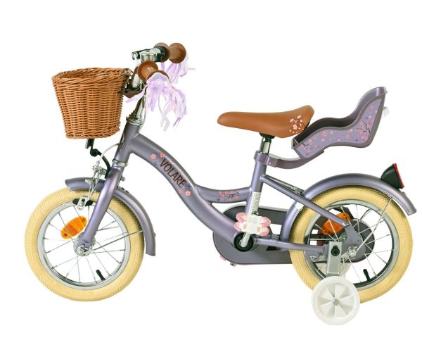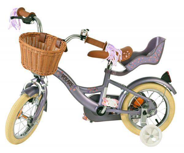 Veiligheid staat voorop! Daarom heeft deze gave fiets een handrem en terugtraprem, afneembare zijwieltjes en een gesloten kettingkast. Ook aan het comfort is gedacht. De mooie paarse Volare fiets heeft een comfortabel zacht zadel, een poppenzitje, een handig rieten mandje en vrolijke handvatstreamers op de fiets op te fleuren Om zo lang mogelijk van de fiets te kunnen genieten zijn het zadel en stuur in hoogte verstelbaar. Wordt geleverd inclusief al het montagemateriaal dat nodig is om de fiets in elkaar te zetten!
