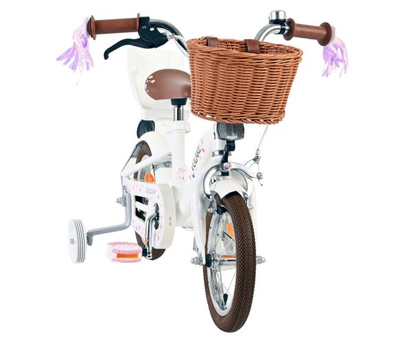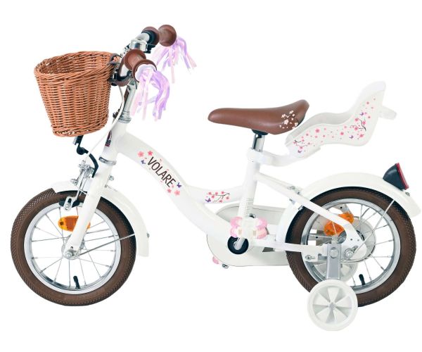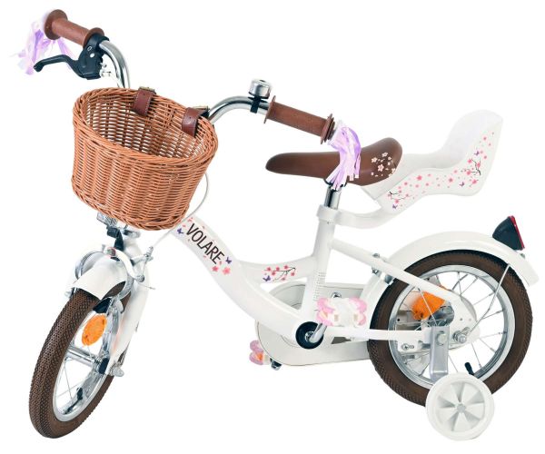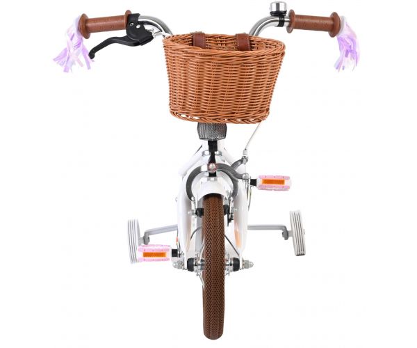 Veiligheid staat voorop! Daarom heeft deze gave fiets een handrem en terugtraprem, afneembare zijwieltjes en een gesloten kettingkast. De fiets heeft reflectoren van voor, achter en in de wielen. Ook aan het comfort is gedacht. De mooie witte Volare fiets heeft een comfortabel zacht zadel, een poppenzitje, een handig rieten mandje en vrolijke handvatstreamers op de fiets op te fleuren Om zo lang mogelijk van de fiets te kunnen genieten zijn het zadel en stuur in hoogte verstelbaar. Wordt geleverd inclusief al het montagemateriaal dat nodig is om de fiets in elkaar te zetten!