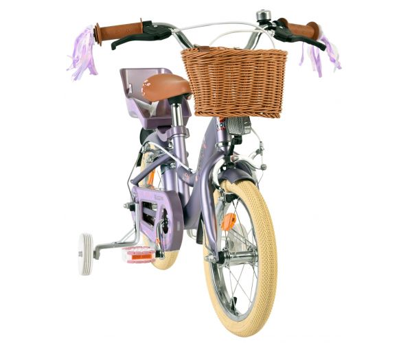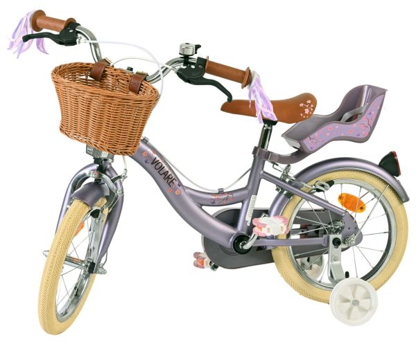 Veiligheid staat voorop! Daarom heeft deze gave fiets geen terugtraprem maar twee handremmen, afneembare zijwieltjes en een gesloten kettingkast. Ook aan het comfort is gedacht. De mooie paarse Volare fiets heeft een comfortabel zacht zadel, een poppenzitje, vrolijke handvatversieringen en een handig rieten mandje. Om zo lang mogelijk van de fiets te kunnen genieten zijn het zadel en stuur in hoogte verstelbaar. Wordt geleverd inclusief al het montagemateriaal dat nodig is om de fiets in elkaar te zetten!