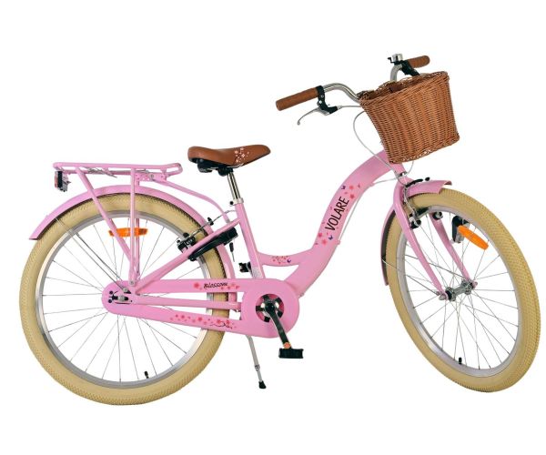 De Volare Blossom 24 inch meisjesfiets met vrolijk bloemenpatroon is stijlvol én veilig, met twee handremmen, verlichting en reflectoren. Dankzij het mandje, verstelbaar stuur en zadel, stevig slot en standaard is deze fiets perfect voor elk avontuur!