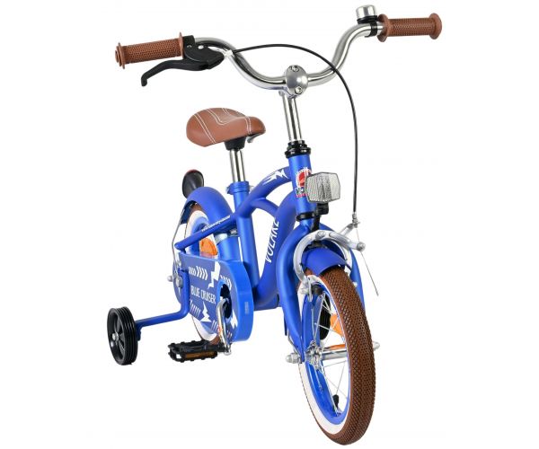 Veiligheid staat voorop! Daarom heeft deze coole fiets een handrem en terugtraprem, een gesloten kettingkast reflectoren voor en achter en afneembare zijwieltjes. De fiets heeft ook een leuke bel. Ook aan comfort is gedacht. De mooie blauwe Volare fiets met bruine accenten heeft een zacht zadel, een tijdloos design en een uniek frame dat tegen een stootje kan. Het zadel en stuur zijn in hoogte verstelbaar, zodat je zo lang mogelijk van de fiets kunt genieten. Kortom: een fiets van topkwaliteit waar je kind jarenlang plezier van zal hebben!