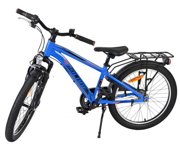 Ook aan praktisch gemak is gedacht: de donkerblauwe Volare fiets heeft een handige achterdrager om spullen eenvoudig mee te nemen, een zacht en comfortabel zadel, een stevige standaard én een stevig slot. Dankzij de extra lange zadelpen groeit de fiets langer mee met je kind. Let op: het stuur is niet in hoogte verstelbaar.