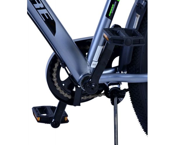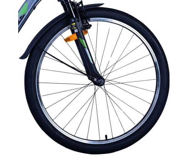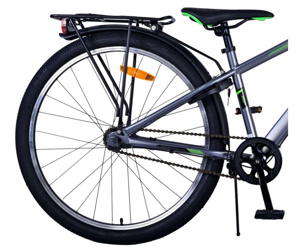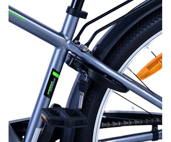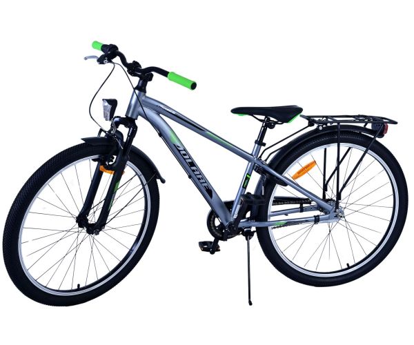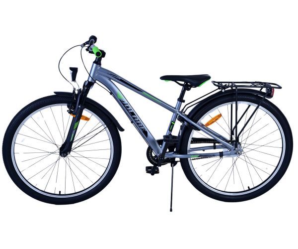 Stoere Volare Cross 26 inch kinderfiets in donkergrijs met 3 Shimano versnellingen, terugtraprem én verlichting voor extra veiligheid. Met achterdrager, stevig slot en comfortabel zadel is deze moderne fiets ideaal voor schoolritten en avonturen!