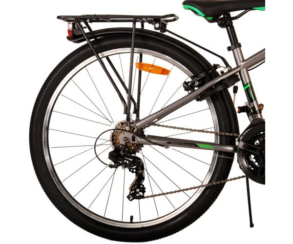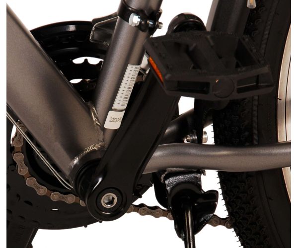 Veiligheid staat voorop! Daarom heeft deze stoere fiets geen terugtraprem maar twee handremmen, 21 versnellingen, reflectoren in de wielen en verlichting op batterijen voor en achter. Ook aan comfort is gedacht. De mooie grijze Volare fiets heeft een handige achterdrager om al je spullen moeiteloos mee te nemen, een comfortabel zacht zadel, een standaard zodat je fiets altijd netjes staat en een stevig slot. Om zo lang mogelijk van de fiets te kunnen genieten heeft hij een extra lange zadelpen, zodat de fiets nog langer met het kind meegroeit. Let op: het stuur is niet in hoogte verstelbaar!