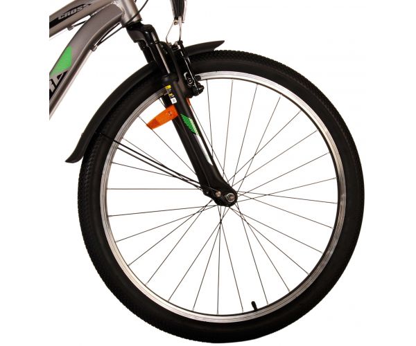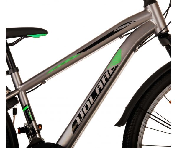 De grijze Volare Cross 26 inch kinderfiets is superstoer én praktisch met 21 versnellingen, dubbele handremmen en batterijverlichting. Met achterdrager, verstelbare zadelpen en stevig slot is deze topper klaar voor elke rit en groeit hij moeiteloos mee!