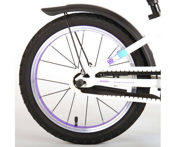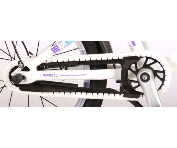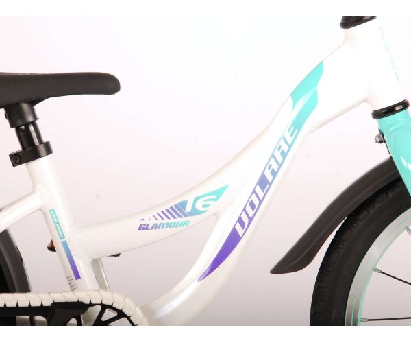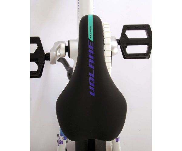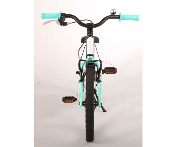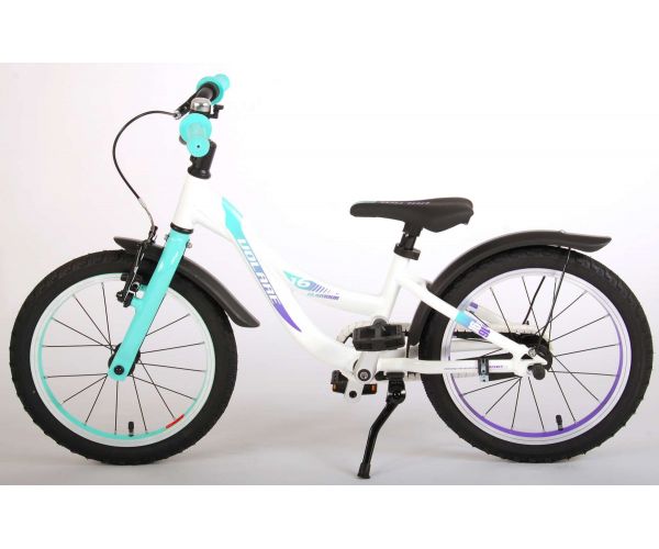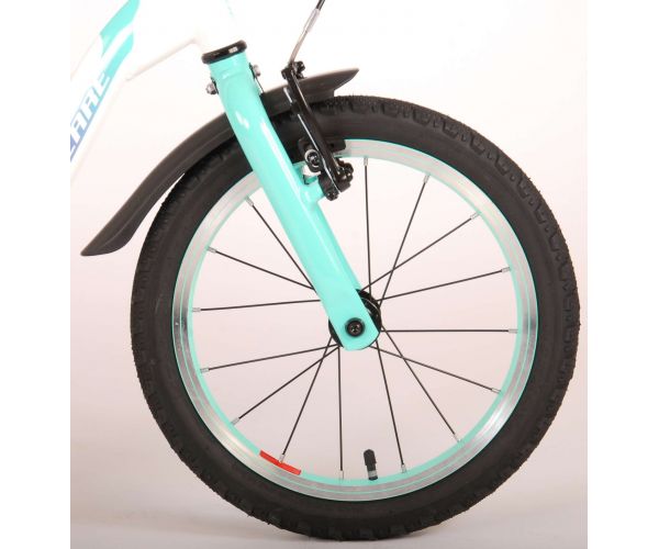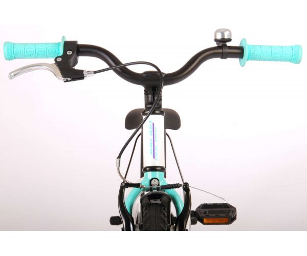 Veiligheid staat voorop! Daarom heeft deze gave fiets een handrem en terugtraprem en een chainlooper. Daarnaast heeft de fiets reflectoren in de trappers en een leuke bel. Ook aan het comfort is gedacht. De mooie witte Volare fiets met mintgroene accenten heeft een extra licht aluminium frame (slechts 5,9 kilo!), een comfortabel zacht zadel, handvaten van kraton, en een stevig standaard zodat je fiets altijd netjes blijft staan. Om zo lang mogelijk van de fiets te kunnen genieten heeft de fiets een extra lange zadelpen waardoor de fiets nóg langer met het kind meegroeit (het stuur is niet in hoogte verstelbaar). Kortom: een topkwaliteit fiets waar uw kind nog jaren van kan genieten!