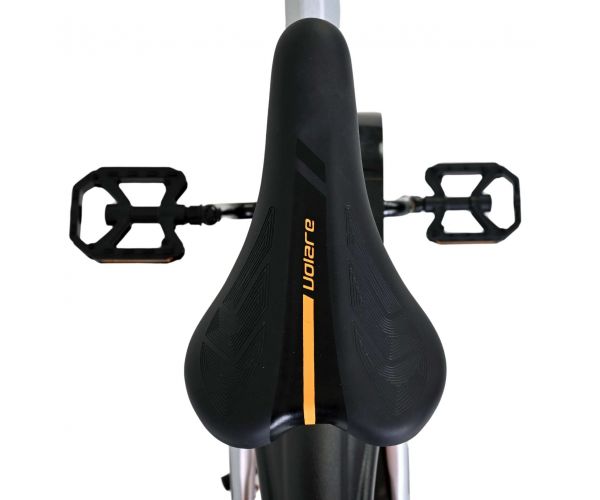 Veiligheid staat voorop! Daarom heeft deze gave fiets een handrem en terugtraprem en een gesloten kettingkast. Daarnaast heeft de fiets een leuke bel. Ook aan het comfort is gedacht. De mooie zilveren Volare fiets met oranje accenten heeft een luxe zacht zadel, een strak frame dat wel tegen een stootje kan, en extra lange spatborden om al het vuil tegen te houden. Om zo lang mogelijk van de fiets te kunnen genieten heeft de fiets een extra lange zadelpen waardoor de fiets nóg langer meegroeit. Wordt geleverd inclusief al het montagemateriaal dat nodig is om de fiets in elkaar te zetten!