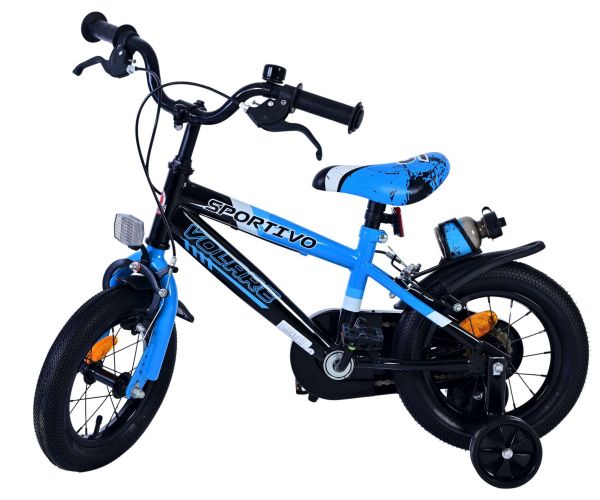 Volare Sportivo Kinderfiets - Jongens - 12 inch - Blauw Zwart - Twee Handremmen