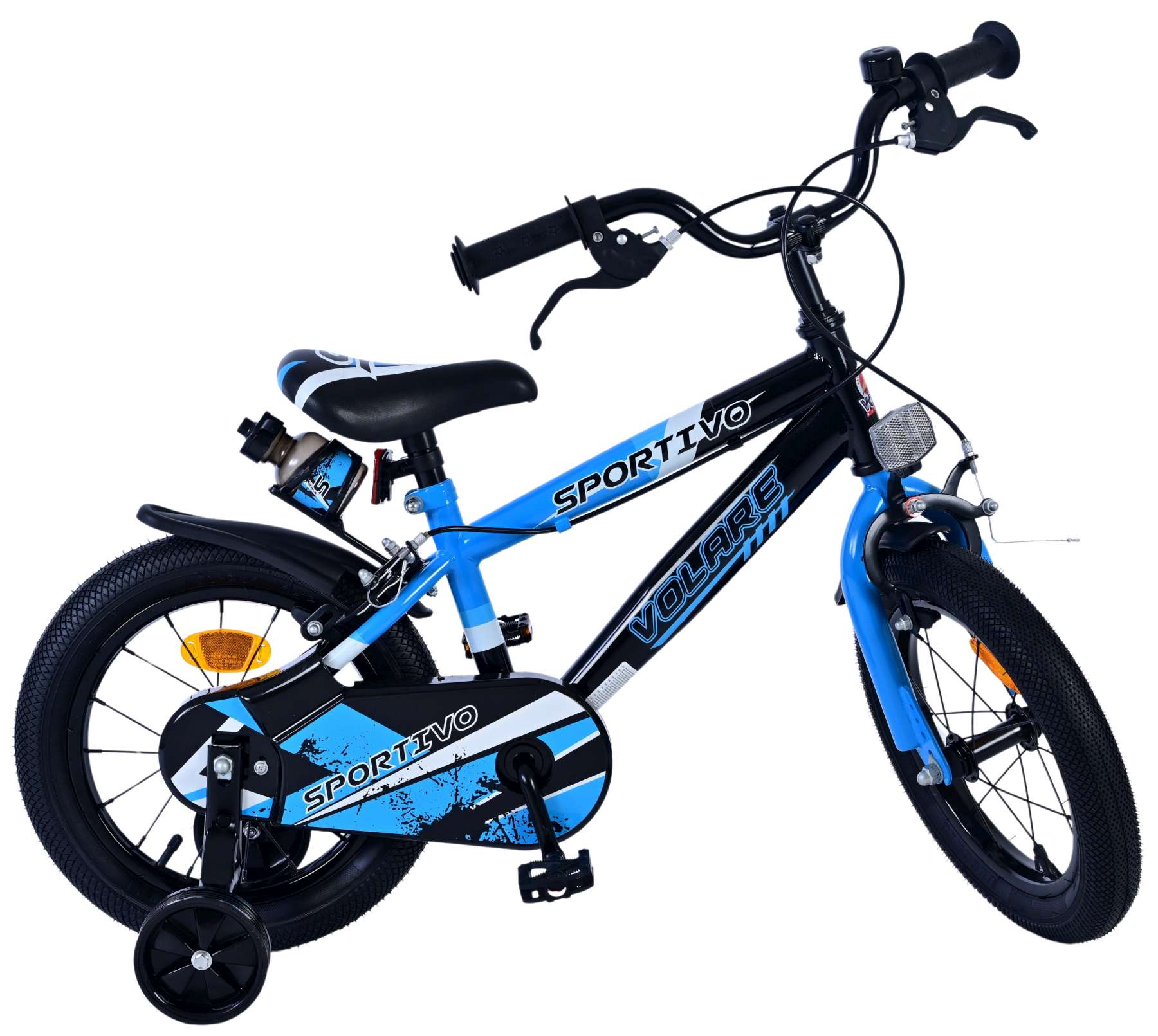 Veiligheid staat voorop! Daarom heeft deze gave fiets een gesloten kettingkast ter bescherming van de vingers. Deze fiets heeft GEEN terugtraprem, maar twee handremmen! en afneembare zijwieltjes. Ook aan het comfort is gedacht. De mooie blauwe Volare fiets heeft een bidonhouder met bidon. Om zo lang mogelijk van de fiets te kunnen genieten zijn het zadel en stuur in hoogte verstelbaar.