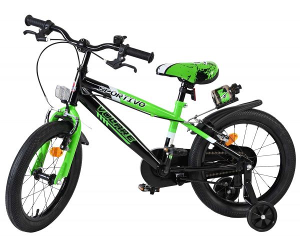 Volare Sportivo Kinderfiets - Jongens - 16 inch - Groen Zwart - Twee Handremmen