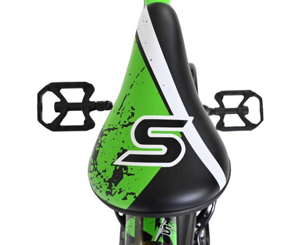 Veiligheid staat voorop! Daarom heeft deze gave fiets geen terugtraprem maar twee handremmen en afneembare zijwieltjes. Daarnaast heeft de fiets reflectoren op de trappers. Ook aan het comfort is gedacht. De mooie zwart/groene Volare fiets heeft een bidonhouder met bidon en gesloten kettingkast ter bescherming van de vingers. Om zo lang mogelijk van de fiets te kunnen genieten zijn het zadel en stuur in hoogte verstelbaar.
