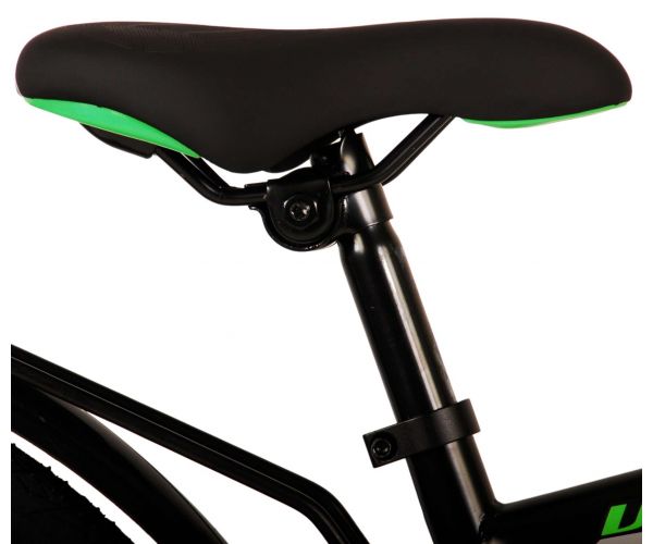 Veiligheid staat voorop! Daarom heeft deze gave fiets een handrem en terugtraprem en verlichting op batterij voor en achter. Daarnaast heeft de fiets een leuke bel en reflectoren in de wielen. Ook aan het comfort is gedacht. De mooie zwarte Volare fiets met groene accenten heeft een luxe zacht zadel en extra zachte handvaten, een handige achterdrager, en een stevig frame dat wel tegen een stootje kan. Verder heeft de fiets een standaard zodat hij netjes blijft staan en een sterk slot. Om zo lang mogelijk van de fiets te kunnen genieten heeft deze een extra lange zadelpen waardoor de fiets nóg langer met het kind meegroeit en ook het stuur is in hoogte verstelbaar.