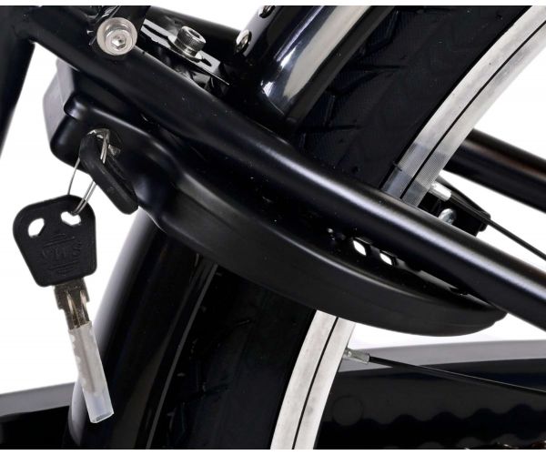 Veiligheid staat voorop! Daarom heeft deze gave fiets een handrem en terugtraprem en verlichting op batterij voor en achter. Daarnaast heeft de fiets een leuke bel en reflectoren in de wielen. Ook aan het comfort is gedacht. De mooie zwarte Volare fiets met blauwe accenten heeft een luxe zacht zadel, 3 versnellingen van Shimano, extra zachte handvaten, een handige achterdrager, en een stevig frame dat wel tegen een stootje kan. Verder heeft de fiets een standaard zodat hij netjes blijft staan en een sterk slot. Om zo lang mogelijk van de fiets te kunnen genieten heeft deze een extra lange zadelpen waardoor de fiets nóg langer met het kind meegroeit en ook het stuur is in hoogte verstelbaar.