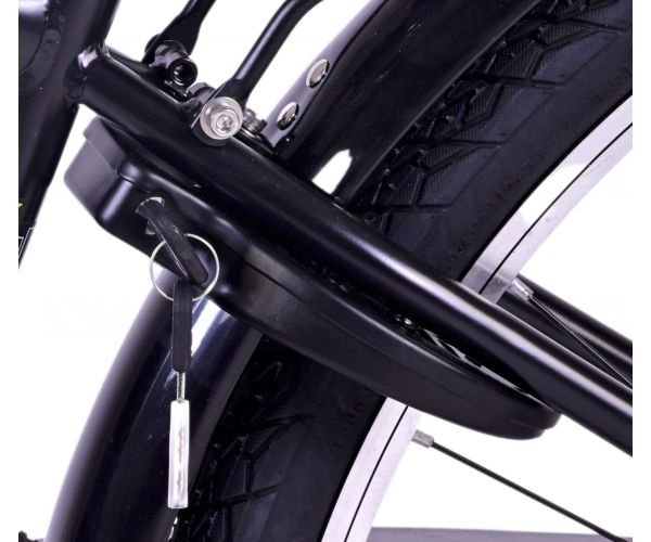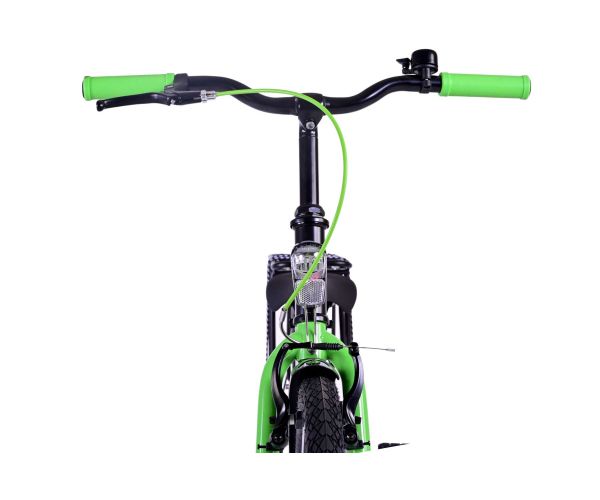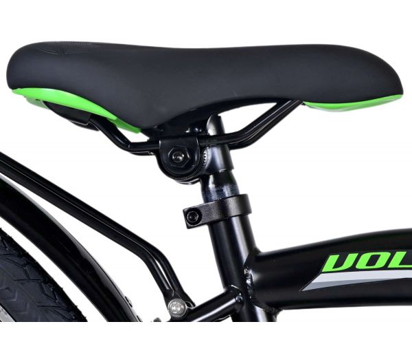 Veiligheid staat voorop! Daarom heeft deze gave fiets een handrem en terugtraprem en verlichting op batterij voor en achter. Daarnaast heeft de fiets een leuke bel en reflectoren in de wielen. Ook aan het comfort is gedacht. De mooie zwarte Volare fiets met groene accenten heeft een luxe zacht zadel en extra zachte handvaten, een handige achterdrager, en een stevig frame dat wel tegen een stootje kan. Verder heeft de fiets een standaard zodat hij netjes blijft staan en een sterk slot. Om zo lang mogelijk van de fiets te kunnen genieten heeft deze een extra lange zadelpen waardoor de fiets nóg langer met het kind meegroeit en ook het stuur is in hoogte verstelbaar.