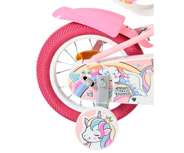 De Volare Unicorn 12 inch kinderfiets is gemaakt voor kleine dromers die elke rit willen omtoveren tot een magisch avontuur. Met haar zachte roze kleur, vrolijke unicorn-details en speels design is deze fiets een echte blikvanger.