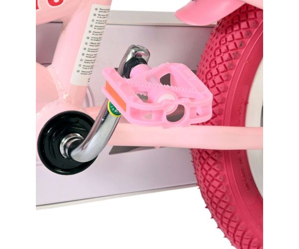 De afneembare zijwieltjes helpen kinderen stap voor stap leren fietsen. Zodra het fietsen goed gaat, zijn de zijwielen eenvoudig te verwijderen. Voorop de fiets zit een handig mandje en achterop een schattig poppenzitje, zodat de favoriete knuffel of pop altijd mee kan. Het zadel en stuur zijn in hoogte verstelbaar en groeien zo mee met je kind. Daarnaast is de fiets voorzien van een bel en mooie roze banden die het geheel helemaal afmaken.