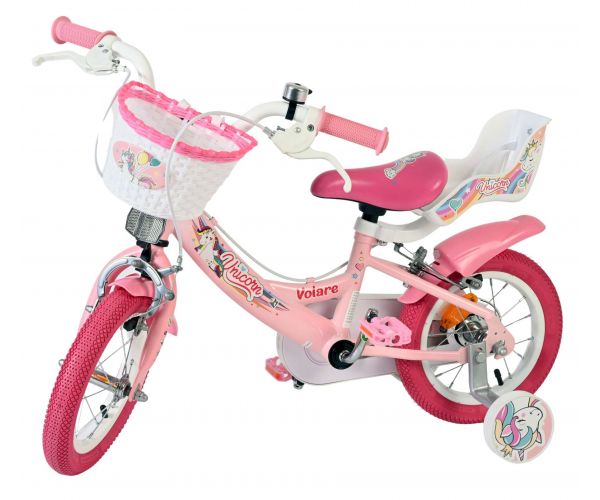 Volare Unicorn Kinderfiets - Meisjes - 12 inch - Roze - Twee handremmen