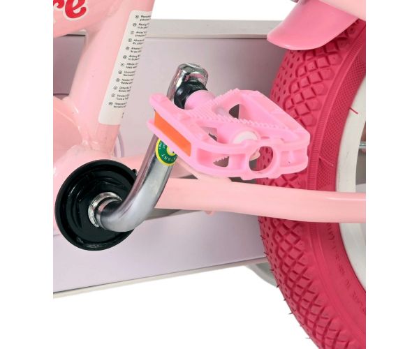 De fiets heeft alleen twee handremmen (géén terugtraprem), zodat kinderen direct leren remmen zoals op een echte grote fiets. Met de roze banden, het handige mandje voorop en het poppenzitje achterop is deze fiets ideaal voor dagelijks speelplezier.