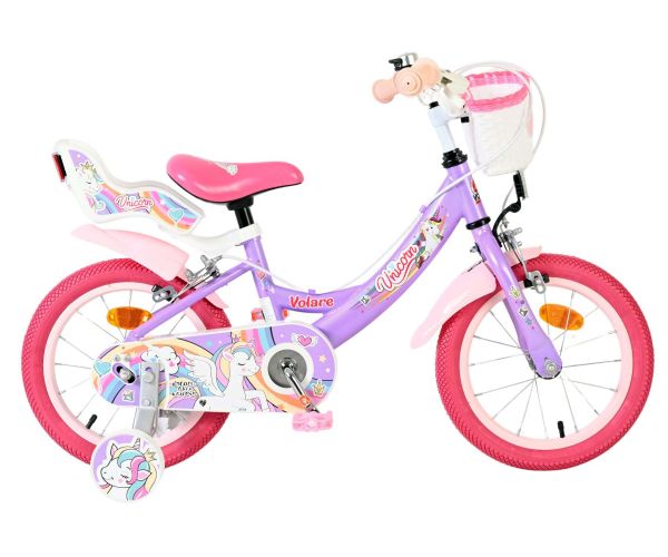 Volare Unicorn Kinderfiets - Meisjes - 14 inch - Paars - Twee Handremmen