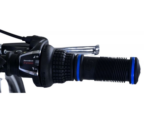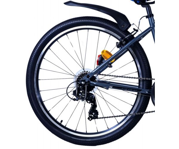 Veiligheid staat voorop! Daarom heeft deze gave fiets 2 handremmen en geen terugtraprem! Daarnaast heeft de fiets 21 versnellingen van shimano met revoshifters, reflectoren in de wielen, reflectoren voor en achter op de fiets, een bel, verlichting op batterijen voor en achter. De gekantelde stuurpen zorgt voor een beter zicht op de weg, maar is daardoor niet in hoogte verstelbaar. Ook aan het comfort is gedacht. De mooie satijn grijze Volare fiets met blauwe accenten heeft een comfortabel zacht zadel, een standaard zodat je fiets netjes blijft staan, en stoere extra brede banden. Om zo lang mogelijk van de fiets te kunnen genieten heeft de fiets een extra lange zadelpen waardoor de fiets nóg langer meegroeit.