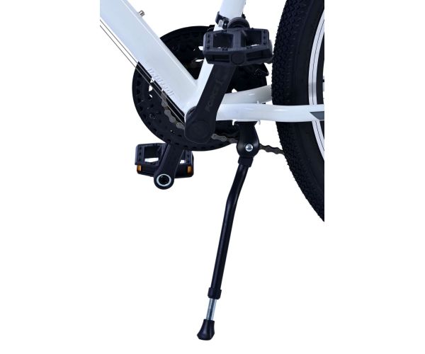 Veiligheid staat voorop! Daarom heeft deze gave fiets 2 handremmen en geen terugtraprem! Daarnaast heeft de fiets 21 versnellingen van shimano met revoshifters, reflectoren in de wielen, reflectoren voor en achter op de fiets, een bel, verlichting op batterijen voor en achter. De gekantelde stuurpen zorgt voor een beter zicht op de weg, maar is daardoor niet in hoogte verstelbaar. Ook aan het comfort is gedacht. De mooie witte Volare fiets met roze accenten heeft een comfortabel zacht zadel, een standaard zodat je fiets netjes blijft staan, en stoere extra brede banden. Om zo lang mogelijk van de fiets te kunnen genieten heeft de fiets een extra lange zadelpen waardoor de fiets nóg langer meegroeit.
